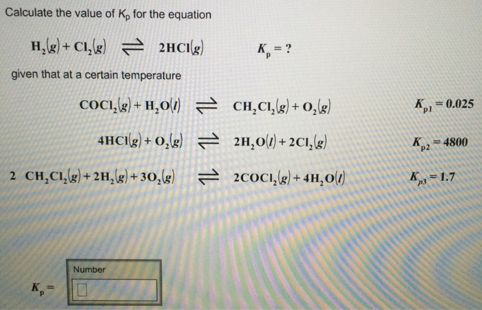 Calculate the value of K for the equation Cs CO g 2COg Kp given that at a certain temperature Cs 2 H Og COg 2 H g Kp1 303 H g. Calculate the value of Kp for the equation. Because the value of Δ G r x m o is dependent on temperature the value of K p is as well.